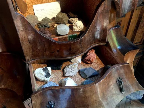 倫敦藝術(shù)家 Faye Toogood 在旅行途中收集來的各式各樣的石頭,被放在一個古老的、異形的裝飾柜內(nèi)。