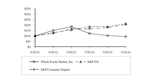 對于這般業(yè)績,股東們顯然也是不太滿意,最直接的表現(xiàn)是13年之后,全食的股價再也沒能跑贏大盤,且一路走低。