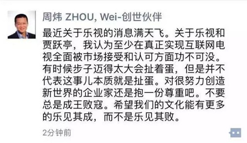樂視控股傳播副總裁程時(shí)盛又在微信朋友圈發(fā)文對此事做了進(jìn)一步澄清。
