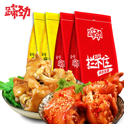 蹄勁豬蹄,我們鹵的不只是豬蹄,更是能量與樂趣;從一出生,就自備能量標(biāo)簽和互聯(lián)網(wǎng)精神。全民參與試吃,漂洋過海創(chuàng)新,百位美女挑蹄,眾多大咖獻計,這只辣的風(fēng)騷、香的誘惑的豬蹄在2015成為最具活力和創(chuàng)意的農(nóng)業(yè)深加工品牌:營銷視頻點擊量突破600萬,微信公眾平臺一夜?jié)q粉6萬,獲得2015年“標(biāo)桿”中國營銷大獎——創(chuàng)新案例獎,得到羅輯思維、億邦動力、南方人物周刊等權(quán)威媒體平臺的鼎力推薦,為中國農(nóng)業(yè)探索互聯(lián)網(wǎng)營銷模式提供了良好范本!