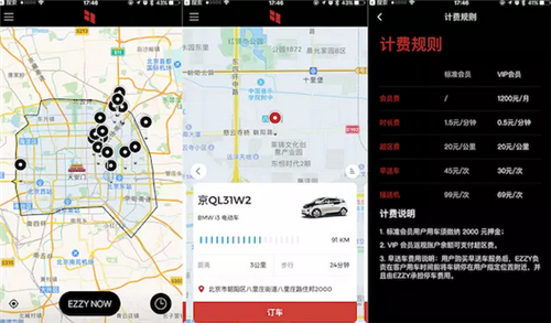 但是從用戶角度出發(fā),也有一些體驗(yàn)上的問題,比如有時(shí)候按照地圖的指示根本找不到車,因?yàn)檫@輛車有可能停到了地下車庫;有時(shí)候不注意會(huì)收到幾百塊的超區(qū)費(fèi)訂單,因?yàn)闊o意之間把車開出了 EZZY 在北京以四環(huán)路為界的服務(wù)區(qū)域,等等。