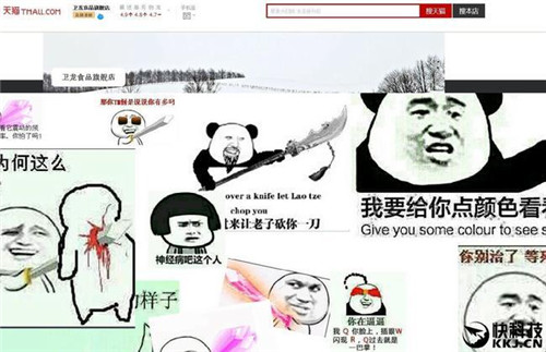 當(dāng)天下午一點(diǎn)半,我們更換了一個(gè)與暴漫相關(guān)的頁(yè)面,仍是粗制濫造的被黑畫風(fēng)。因?yàn)橄挛缫稽c(diǎn)的時(shí)候,店鋪已經(jīng)到了流量峰值,觸達(dá)全網(wǎng)用戶后,為了保持話題持續(xù)關(guān)注度,我們臨時(shí)增加了與黑客博弈的環(huán)節(jié),這時(shí)傳播的渠道已經(jīng)不是阿里系內(nèi),而是微博。為了迎合微博用戶的喜好,制造第二次被黑使用暴漫表情包元素,并埋下與暴漫合作伏筆。