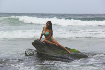 鄧深在特立尼達(dá)與多巴哥海邊。