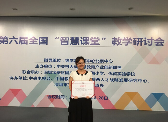 侯東娜老師喜獲全國智慧課堂二等獎
