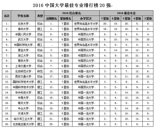 2016中國(guó)大學(xué)最佳專(zhuān)業(yè)排行榜北京大學(xué)居首