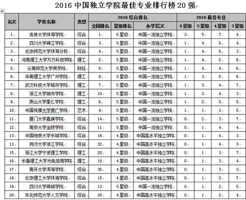 在最新2016中國(guó)各地區(qū)大學(xué)最佳專(zhuān)業(yè)排行榜中,北京市高校有74專(zhuān)業(yè)榮膺中國(guó)七星級(jí)專(zhuān)業(yè),蟬聯(lián)第1,上海列第2,江蘇居第3,湖北列第4,湖南居第5。在2016中國(guó)民辦大學(xué)最佳專(zhuān)業(yè)排行榜中,武昌首義學(xué)院、文華學(xué)院、西安外事學(xué)院、山東英才學(xué)院和西安歐亞學(xué)院名列前5強(qiáng)。在2016中國(guó)獨(dú)立學(xué)院最佳專(zhuān)業(yè)排行榜中,吉林大學(xué)珠海學(xué)院、四川大學(xué)錦江學(xué)院、北京師范大學(xué)珠海分校、河南理工大學(xué)萬(wàn)方科技學(xué)院和云南師范大學(xué)商學(xué)院名列前5強(qiáng)。
