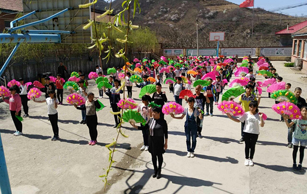 在村小工作了一段時間后, 趙銀鳳發(fā)現(xiàn)了一個問題:一個孩子的成長離不開家庭教育,學校百分之五十的學生都是留守兒童,整個村莊有很多留守婦女、空巢老人,這些家長的業(yè)余生活就是在聊天、打麻將中度過, 卻沒有時間關(guān)注孩子成長。于是她有了一個大膽的想法:把家長、村民也納入教育對象,利用寒暑假、休息日調(diào)動家長們的積極性。于是她幫助村民成立老年協(xié)會、婦女學校、家長學校、秧歌隊等組織,組織孩子們、家長與村民節(jié)目表演等活動,推動學習型家庭、學習型組織、學習型社區(qū)的建立,使學校成為整個村莊的文化中心;家、校、村三者結(jié)合,把村民帶到課堂,把課堂帶進村莊,不僅提升了學生的能力和品質(zhì),提高了村民的生產(chǎn)生活技能,豐富了村民的文化生活,改變了村里白喜事大操大辦等陋習。