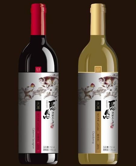 天塞酒莊邀請中國“三猴王”之一的瓷猴王:萬志軍大師親情奉獻“靈猴獻瑞”圖,并手書“感恩”二字!在生肖酒標上面,一只小猴子捧 著一顆仙桃獻給大猴子,猴子相互微笑,其樂融融,整體畫面溫馨而感人——“猴王”大師用精絕而細膩的筆觸,完美詮釋出“感 恩”二字的動人之處。