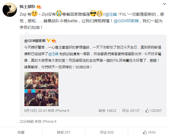 近日,一張章子怡發(fā)布會(huì)挺著“大肚”的照片引發(fā)網(wǎng)友熱議,雖然只是假扮孕婦,卻引來(lái)大波網(wǎng)友詢問(wèn)何時(shí)準(zhǔn)備要寶寶,可見(jiàn)網(wǎng)友對(duì)兩人感情生活的關(guān)注。8月16日,鄧紫棋在微博上曬出汪峰為其過(guò)生日的照片,17日中午,汪峰轉(zhuǎn)發(fā)此微博并稱(chēng)要為學(xué)員們加油,17日下午,章子怡回復(fù)汪峰:“Ziqi有~Ziyi沒(méi)有,等著回家跪榴蓮?!?/font>