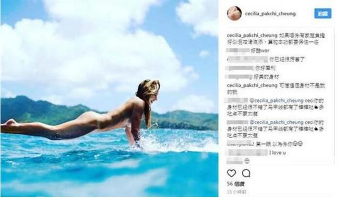 平時愛運動的張柏芝,時常曬出美照,5日她PO出外國模特兒裸照寫下:“如果不是有家庭負擔,好想她這樣滑浪”。似乎也想放縱一下,網(wǎng)友大贊這身材超美,她感嘆說:“可惜不是我的”,可見對自己要求頗高。