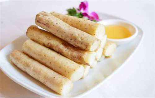粘蜜鐵棍山藥:鐵棍山藥用刷子洗凈,.放入蒸鍋,蒸20分鐘左右,燜2分鐘,筷子可以插進(jìn),就熟了。直接粘糖,粘蜜,或者粘煉乳吃都很好。
