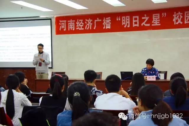 原來是河南經(jīng)濟廣播“明日之星”校園主持人大賽賽前培訓現(xiàn)場呀!還沒到開講,房間里就已經(jīng)座無虛席。