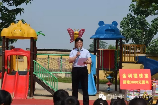 縣里領(lǐng)導(dǎo)和《知道不知道》主持人鵬哥紛紛上臺(tái)致辭,金利福珠寶和中鐵七局集團(tuán)電務(wù)工程有限公司也進(jìn)行了圖書的捐贈(zèng)!