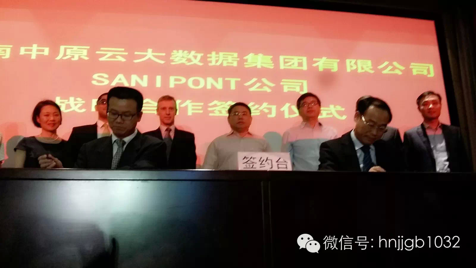 剛剛交付的中原云平臺(tái)今天上午在鄭州中原福塔簽下了跨境合作的第一單——河南中原云大數(shù)據(jù)集團(tuán)有限公司&美國(guó) Sanipont international LLC公司戰(zhàn)略合作協(xié)議。