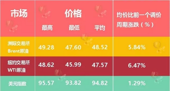5月24日,因美國原油庫存減少,價格再度上漲,布倫特、WTI原油期貨收盤價格分別為48.61美元、48.62美元,其中WTI原油期貨價格再創(chuàng)去年10月以來的新高,比國內(nèi)成品油調(diào)價前分別上漲6.8%、9.2%。