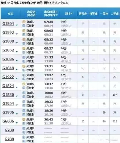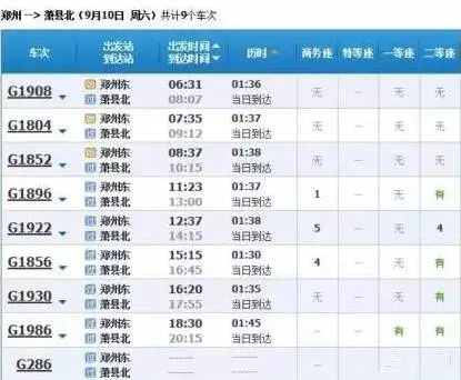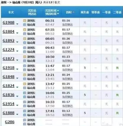 最快的一趟車G368/9,19點(diǎn)05分從上海虹橋始發(fā),23點(diǎn)02分到達(dá)鄭州東,耗時3小時57分,中途僅??磕暇┖托熘菡?,其余列車運(yùn)行時間都在4小時到5小時之間。
