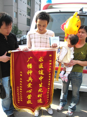 4月6日,在河南人民廣播電臺空中電波的幫助和協(xié)調(diào)下,衛(wèi)生、高速路政、交警等部門齊心協(xié)力,展開了一場挽救生命的接力大行動(dòng),信陽一名生命垂危的手足口病患兒王然得到了及時(shí)救助。經(jīng)過近一個(gè)月的精心治療,5月5日上午,王然康復(fù)出院,坐上了回家的列車。
