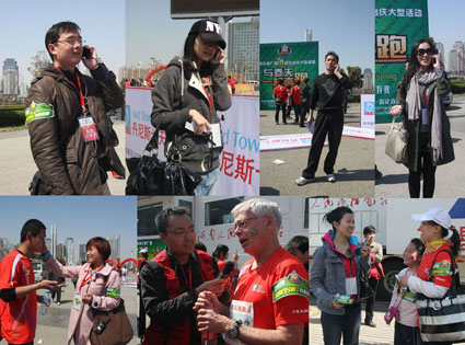 在歷時四個小時的直播過程里,現(xiàn)場大型直播車就像漂浮在旗幟和人群大海洋中的帆船,顛簸在聲浪中的現(xiàn)場主持人與主直播室的主持人默契配合,共完成與現(xiàn)場記者連線20多個,分別邀請了鄭州市副市長劉東、1041跑友團、冠軍選手、情侶馬拉松參賽者、志愿者等嘉賓走進現(xiàn)場直播車,就全民健身的話題進行溝通、交流、分享。而守候在多個點位的15名現(xiàn)場記者用手機連線的方式,為聽眾傳遞出賽場激昂的心跳聲、沸騰的歡呼聲,并通過電波飛揚在春天里,彌漫在春風中!