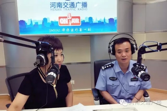 6月16日上午,鄭州市公安局交巡警支隊竇立勇支隊長帶領(lǐng)車管所、交通科研所、法制、交通、事故等科室負(fù)責(zé)人做客河南交通廣播《南方談交通》節(jié)目,與廣大車友就交通出行話題實時互動。