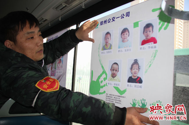 映象網(wǎng)快訊(記者 燕子丹 文/圖)“媽媽,車廂的玻璃上怎么有這么多小朋友的照片呢?”“這些都弟弟妹妹都是被壞人騙走的,他們現(xiàn)在找不到媽媽了?!薄斑@么冷的天,沒有爸爸媽媽在身邊真可憐?!?月8日上午,在鄭州公交B12路公交車上,乘客看到車廂的玻璃上有不少被拐兒童的照片,有的孩子的甚至還不足滿月,不少人紛紛拿出手機轉發(fā)朋友圈。車長劉建濤告訴記者,制作這樣的車廂希望大家都能通過拍照轉發(fā)朋友圈,讓更多的人了解這個信息,幫助這些孩子盡快找到自己的父母。