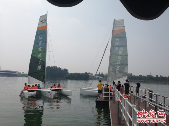 映象網(wǎng)訊 (記者 殷清卉)提起帆船,大家一般想起在大海里暢游的感覺,但是現(xiàn)在在我們鄭州也可以玩帆船了,7月27日,來自全省各地的300多名幸運(yùn)聽眾,便在河南電臺(tái)信息廣播《房產(chǎn)江湖》節(jié)目組的帶領(lǐng)下,在雁鳴湖國(guó)際假日公園過了一把帆船癮。