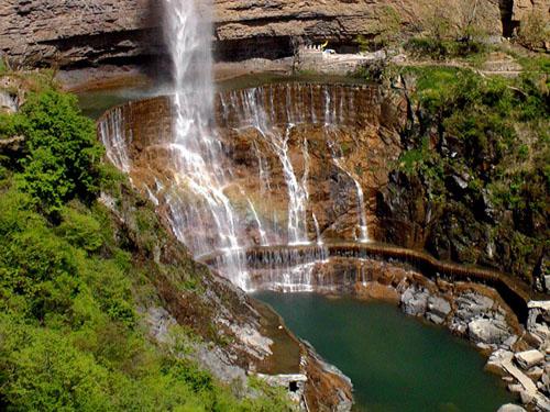 紅石河碧水橫溢、紅綠相映、色彩斑斕、明麗如畫,因海拔1100米被譽(yù)為“太行天河”。從紅石河畔俯瞰,山谷幽深、流水潺潺,河水順著光潔平整、錯(cuò)落有致的紅石板流淌不息,直沖而下形成又一著名景點(diǎn)——天河大瀑布。紅石河的右畔是觀音洞,觀音洞里的泉水常年不斷、甘甜可口,用來泡茶增三分香,煮飯?jiān)黾尤痔?,現(xiàn)在敞開供應(yīng),保你一杯解風(fēng)塵,二杯去疲乏,三杯大汗落。 八里溝的山,八里溝的水,甚至八里溝的每一塊石頭都引起世界的好奇。景區(qū)森林覆蓋率達(dá)90%,如今,八里溝景區(qū)已經(jīng)成為國(guó)內(nèi)很多前衛(wèi)、時(shí)尚的游客非常向往的一個(gè)人間天堂、世外桃源,也是春季旅游的經(jīng)典線路。