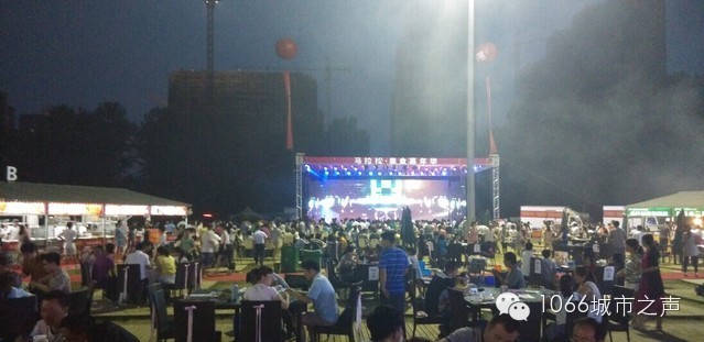 中原美食嘉年華的開(kāi)幕標(biāo)志著集美食、運(yùn)動(dòng)、娛樂(lè)等元素的品牌夜市正式投入運(yùn)營(yíng)??墒沁@里不僅僅是吃飯的地兒,你看那邊幾桌的白領(lǐng),白色襯衫都沒(méi)來(lái)得及脫下就已經(jīng)搶先坐下(請(qǐng)注意,他們是扭著頭看完舞臺(tái)表演的,沒(méi)起身,沒(méi)起身?。跋掳嗪?,跟同事來(lái)這兒說(shuō)說(shuō)話,放松下挺好的?!逼渲幸晃粠浶』镬t腆的說(shuō)到。