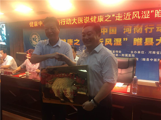 07月23日上午,由河南省衛(wèi)計(jì)委宣傳處指導(dǎo),河南省醫(yī)學(xué)科普學(xué)會(huì)、醫(yī)藥衛(wèi)生報(bào)主辦的“健康中國 河南行動(dòng) 大醫(yī)說健康”開啟第二站:“走進(jìn)風(fēng)濕”睢縣大型醫(yī)學(xué)科普宣講義診活動(dòng)。