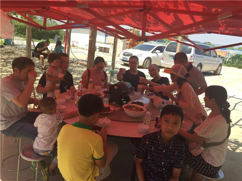 采摘完畢,正好到了中午頭,大家一起聚餐暢飲!園主送出了自己珍愛的葡萄原漿酒助興!美酒,美食,美景,美哉!