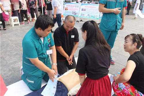 醫(yī)生們一邊操作,一邊講解,市民們有不明白的,還可以現(xiàn)場提問。幾乎每一位認真學習的市民都想一試身手,醫(yī)生則在一旁一對一指導。