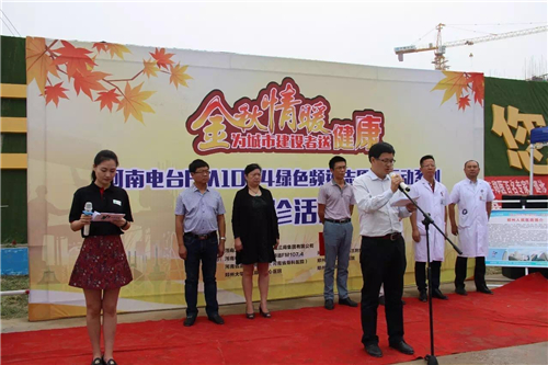 今天(9月24日)上午,河南電臺(tái)綠色頻道“金秋情暖——為城市建設(shè)者送健康”大型系列義診活動(dòng),走進(jìn)中建三局鄭州航空港建筑工地,為建筑工人們免費(fèi)檢查身體,送去健康。