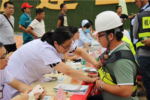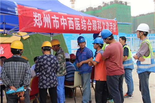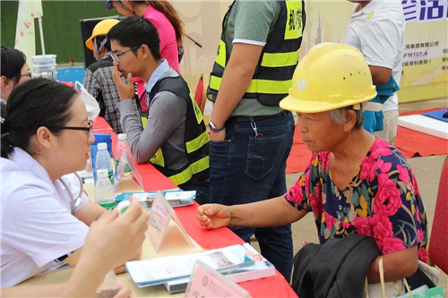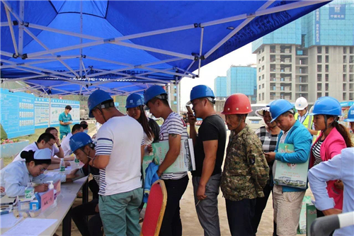 一大早,五大醫(yī)院的白衣天使們,就來(lái)到了中建三局鄭州航空港棚戶區(qū)改造的施工現(xiàn)場(chǎng)。開(kāi)始準(zhǔn)備工作,希望能夠更好地為建筑工人們做健康檢查。