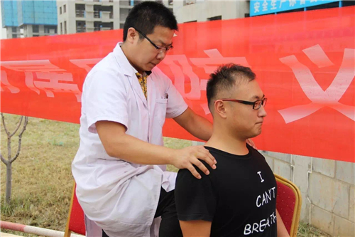 建筑工人平時(shí)工作勞累,肩頸都需要放松,看我們的醫(yī)生按摩技術(shù)也是灰常得高呢!