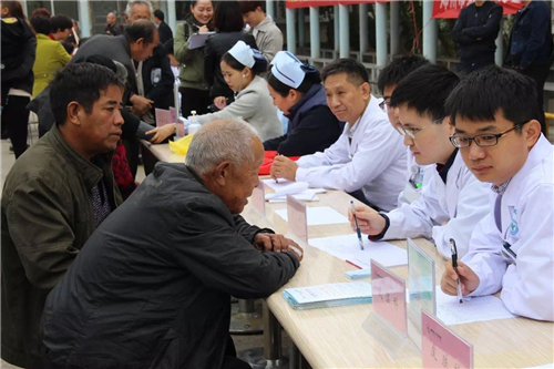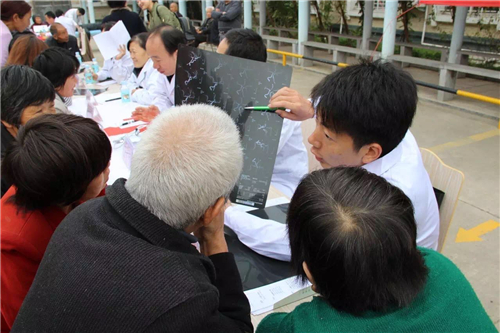 雖然天氣轉涼,但絲毫沒有澆熄大家的熱情,當地的居民早早來到義診現(xiàn)場,等候省會頂尖醫(yī)院專家為自己診斷,專家們也是十分準時,提前到現(xiàn)場為患者看診。