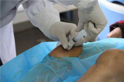 這位大姐有骨性關節(jié)炎,腿部多處常年疼痛。這位醫(yī)生很認真的幫助大姐確認疼痛位置,并且用醫(yī)院專門帶來的治療儀為大姐治療。醫(yī)生說先治療一次,如果疼痛緩解大概進行3-9次的治療就可以痊愈了。