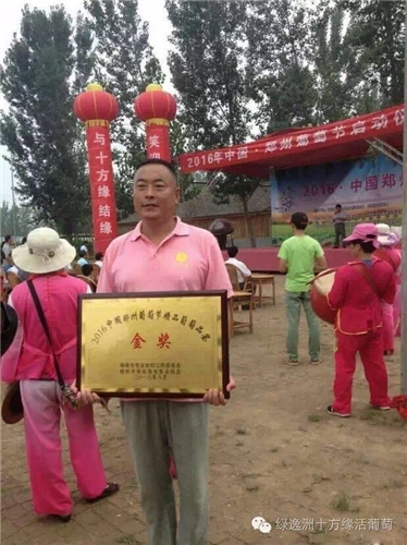 2016年8月5日,由鄭州市農業(yè)農村工作委員會與鄭州市休閑觀光農業(yè)協(xié)會會聯(lián)合舉辦的2016中國鄭州葡萄節(jié)精品葡萄品鑒會,河南緑逸洲農業(yè)科技有限公司十方緣“活”葡萄種植基地選送的“自然農法”生產的優(yōu)質葡萄品種醉金香喜獲金獎。