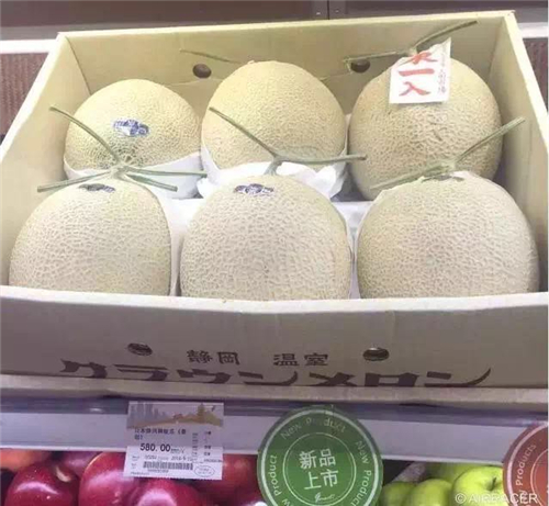 某超市一藤一瓜的靜岡網(wǎng)紋瓜 580元/個(gè)
