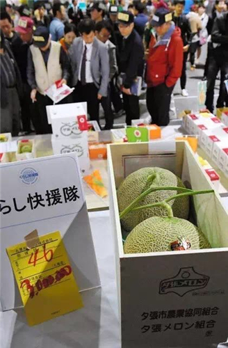日本北海道夕張市特產(chǎn)“夕張蜜瓜”在今年5月26日的一家批發(fā)市場舉行了首次競拍。兩個(gè)裝的夕張蜜瓜禮盒被以300萬日元(約合人民幣17.9萬元)的高價(jià)拍下。