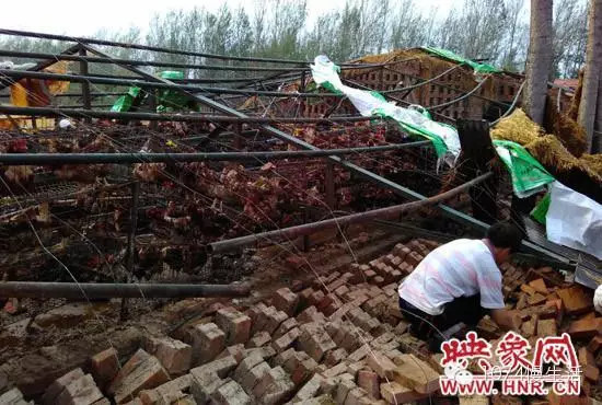 此外,滑縣留固鎮(zhèn)和老廟鄉(xiāng)的部分養(yǎng)雞廠也遭受到了重創(chuàng)。老廟鄉(xiāng)養(yǎng)雞戶宋女士告訴記者:“冰雹大約持續(xù)了20多分鐘,把雞舍全都砸塌了,有8000多只雞,死的死傷的傷,看著心疼死了?!?/p>