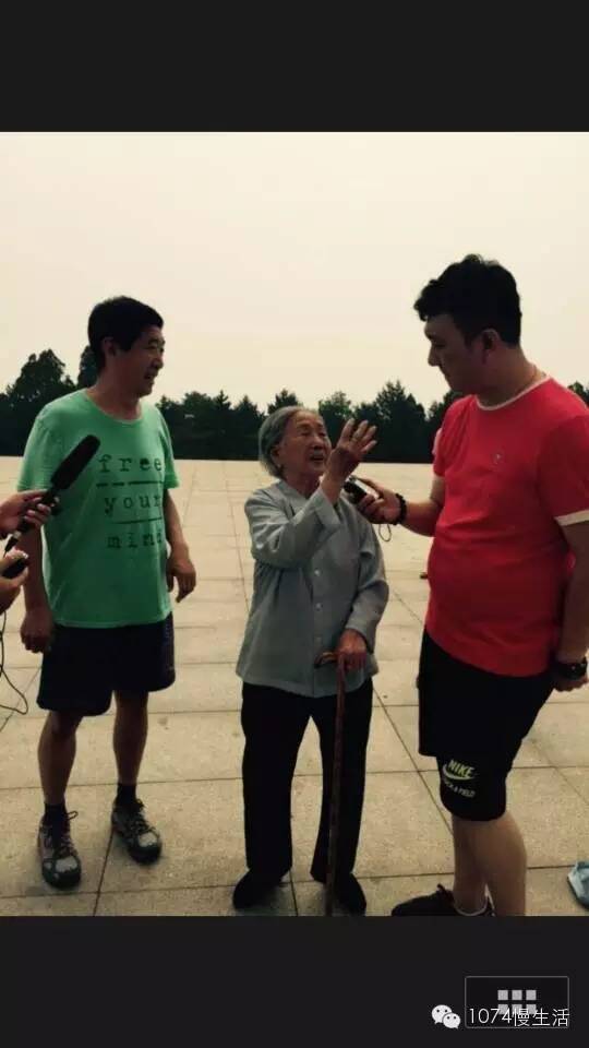 在這次聯(lián)和采訪中,來自晉冀魯豫的記者被一位老奶奶吸引住了, 一個健步奔向這位老奶奶。我們發(fā)現(xiàn)她在百團(tuán)大戰(zhàn)英雄紀(jì)念碑碑前鞠躬三下。了解后才知道老奶奶叫甄永蘭,91歲,18歲來到陽泉居住了無數(shù)個歲月。她識字,用山西話給我念出了碑上的每一個大字。今天是盧溝橋事變的紀(jì)念日,心情無比激動。