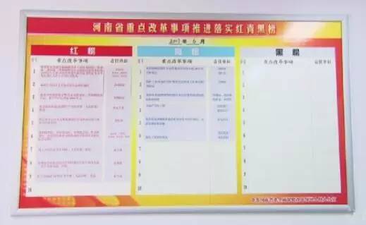 這張省委改革領(lǐng)導小組辦公室內(nèi)的“紅青黑”榜單,生動記錄了各地改革任務(wù)的月度推進落實情況。