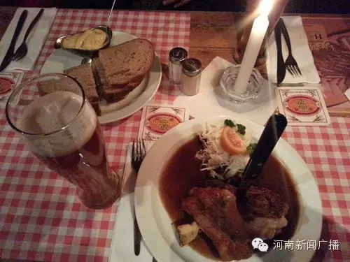 到了德國(guó),當(dāng)然要吃一頓德國(guó)餐:肘子……配上德國(guó)啤酒,第一口下去,哭了……沒(méi)有饅頭不說(shuō),甚至沒(méi)有米飯……要在蒜瓣都沒(méi)有的情況下,吃完這樣一個(gè)肘子,作為河南人的我,真的是很痛苦……