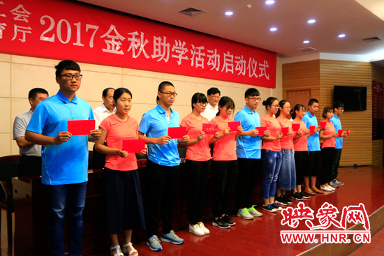 映象網(wǎng)快訊(記者 王寬 實(shí)習(xí)生 張璨榮 文/圖)又是一年金秋時(shí),助學(xué)圓夢暖人心。8月16日,河南省總工會、河南省教育廳共同主辦的河南省2017“金秋助學(xué)”活動(dòng)啟動(dòng)儀式在鄭州舉行。省委副書記王炯,省人大常委會副主任、省總工會主席王保存,省政府副省長徐濟(jì)超,省政協(xié)副主席張廣智出席啟動(dòng)儀式。