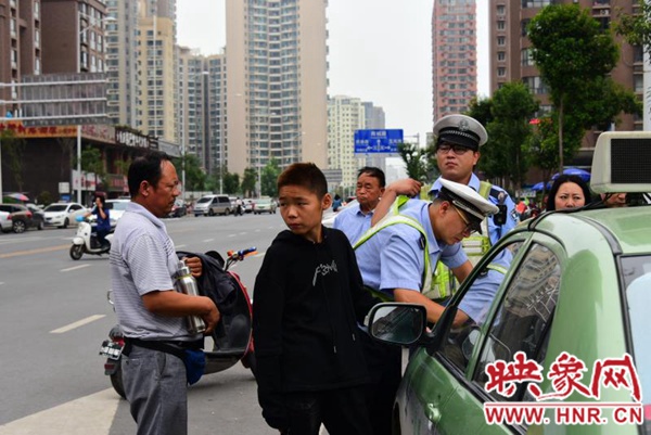 映象網(wǎng)快訊(記者 邱延波 文/圖)9月5日中午12時(shí)許,鄭州市福元路上,一輛電動車疑與出租車發(fā)生碰撞,電動車上的15歲女生倒地后昏迷不醒。隨后,出租車離開現(xiàn)場,熱心市民騎電動車狂追涉嫌肇事的出租車并將其攔下。