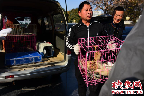 13日下午14時(shí)許,鄭州市人民公園西門口,鄭州市林業(yè)局野生動(dòng)物救護(hù)站的工作人員將幾只鐵籠子分別裝上面包車?;\子里裝著的是救護(hù)站近段時(shí)間救護(hù)的已經(jīng)具備放生條件的鳥類和獸類,這些動(dòng)物將在自然條件比較優(yōu)越的新鄭市具茨山放生。