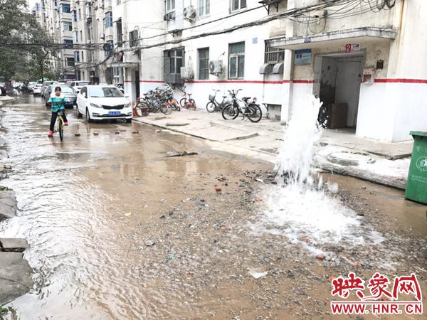 居民宋女士說,自家就住在19號樓5樓,一大早不到7點就聽見樓下有嘩嘩的響聲。她想著是起大風了結果往樓下一看,竟然是自來水管爆管了,就急忙撥打供水熱線67680000搶險,結果一直占線打不通。
