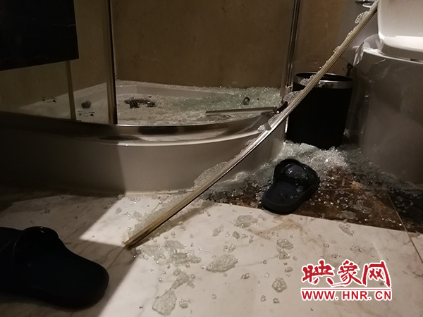 姜先生說,2月28日下午,他入住鄭州某酒店的520房間。5點左右,他從淋浴房內(nèi)洗完澡準備出來,可就在他把浴室玻璃拉門打開的那一剎那間,突然聽見“砰”的一聲巨響。玻璃碎片四處橫飛,將他的手部、腕部及腳部等處扎傷,頓時鮮血直流。