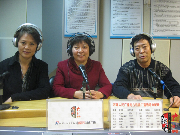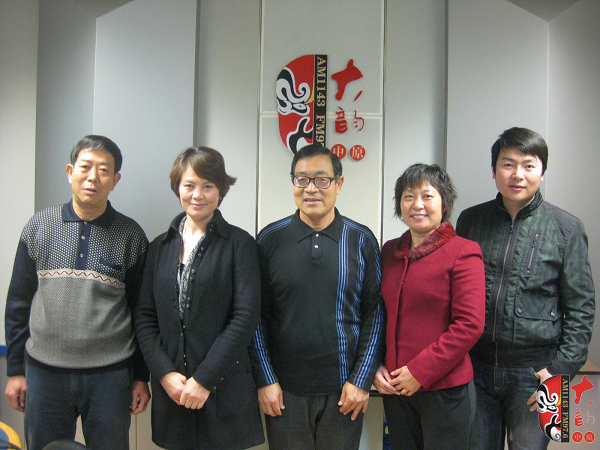 ?。ㄗ笃穑鸿鬈幩囆g(shù)團主任聶衛(wèi)國、副團長兼主要演員李風莉、團長李春友、主任魏桂愛和著名戲曲節(jié)目主持人戲曲廣播“當家小生”月陽在直播間