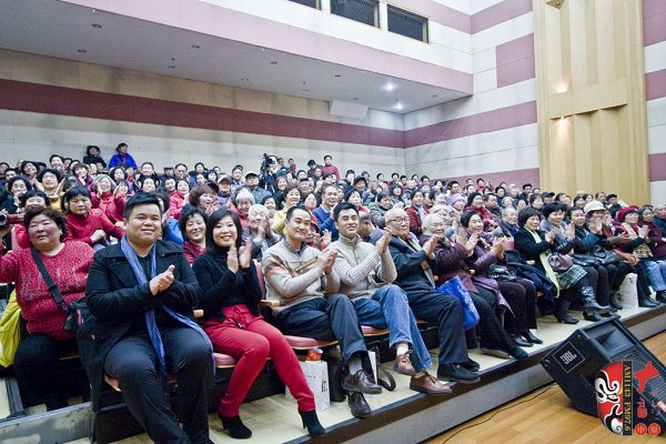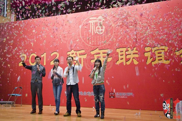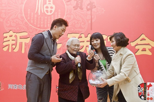 12月28日,一臺(tái)由河南藝術(shù)家及戲迷共同參與的新春聯(lián)誼會(huì)在河南廣播大廈舉行。本次活動(dòng)由河南電臺(tái)戲曲廣播、戲曲出版網(wǎng)共同舉辦。聯(lián)誼會(huì)上,老中青三代名家與戲迷歡聚一堂,氣氛異常熱烈。曾經(jīng)在電影《朝陽(yáng)溝》中飾演拴保娘的豫劇名家高潔、在電影《扒瓜園》中飾演國(guó)英的越調(diào)名家劉琳,中國(guó)戲劇梅花獎(jiǎng)得主楊帥學(xué)、申小梅,豫劇《朝陽(yáng)溝》中新一代“拴?!钡娘椦菡呤⒓t林,為現(xiàn)場(chǎng)熱情的戲迷表演了各自的拿手好戲。藝術(shù)家的精彩演唱博得現(xiàn)場(chǎng)觀眾叫好聲、掌聲不斷,戲曲名家與戲迷共同參與的互動(dòng)游戲使得本次聯(lián)誼會(huì)高潮迭起……當(dāng)豫劇大師馬金鳳的身影出現(xiàn)在大屏幕上時(shí),現(xiàn)場(chǎng)一片安靜。今年90高齡的馬金鳳大師在聽說戲迷聯(lián)誼會(huì)舉行的消息后,特別送來(lái)了新年的問候和祝福,馬老的祝福視頻播完,激動(dòng)的戲迷爆發(fā)出一陣熱烈的掌聲……戲迷趙錢孫(網(wǎng)名)專程從北京趕來(lái)參加活動(dòng),這位小伙子是越調(diào)藝術(shù)的忠實(shí)的支持者,2007年他自費(fèi)創(chuàng)辦了中國(guó)越調(diào)網(wǎng),在宣傳和推介越調(diào)劇種方面做出了杰出貢獻(xiàn)。聯(lián)誼會(huì)上,他和其他四位越調(diào)戲迷自拉自唱了越調(diào)申派名段《收姜維》中的“四千歲你莫要羞愧難當(dāng)”,博得了現(xiàn)場(chǎng)觀眾的熱情掌聲。85歲的戲迷、著名戲曲活動(dòng)家劉建勛老師為表達(dá)激動(dòng)的心情,特別為本次聯(lián)誼會(huì)寫了一首五言律詩(shī),獻(xiàn)給熱情的戲迷觀眾。 “歲末二十八,大地又回春。戲迷慶元旦,賓客多如云。久別重逢日,相見格外親。你拉我來(lái)唱,鄉(xiāng)音暖人心。唱出心坎語(yǔ),唱出好精神,唱出凌云志,唱響河南人。共同來(lái)祝愿:活過一百春!聯(lián)誼會(huì)結(jié)束后,很多觀眾意猶未盡,久久不愿離去,他們紛紛與自己喜愛的戲曲名家溝通交流、合影留念。多位戲迷在接受采訪時(shí)說:感謝戲曲廣播舉辦了這次聯(lián)誼會(huì),不僅給戲迷提供了交流的平臺(tái),而且拉進(jìn)了戲迷與名家的距離……(本次活動(dòng)部分照片由小草提供)