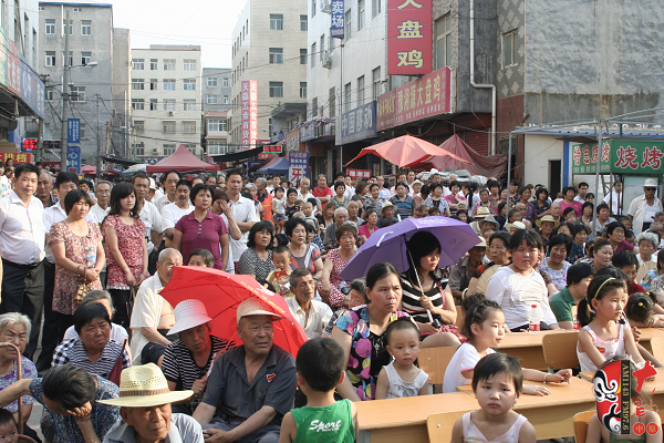 本次活動是在河南進(jìn)行的首場活動,當(dāng)天非常炎熱,但是大家看戲的熱情絲毫沒有減弱。街道里擠滿了前來看戲的居民,大家一邊鼓掌一邊揮動著扇子,別有一番風(fēng)味。整個活動持續(xù)兩個半小時,隨著演出的進(jìn)行,觀眾的熱情不斷高漲,人群中時而掌聲如雷,時而捧腹大笑?;顒咏Y(jié)束之后,觀眾依然不肯離場,當(dāng)?shù)責(zé)崆榈膽蚯鷲酆谜呒娂娚吓_,繼續(xù)著自娛自樂的活動。